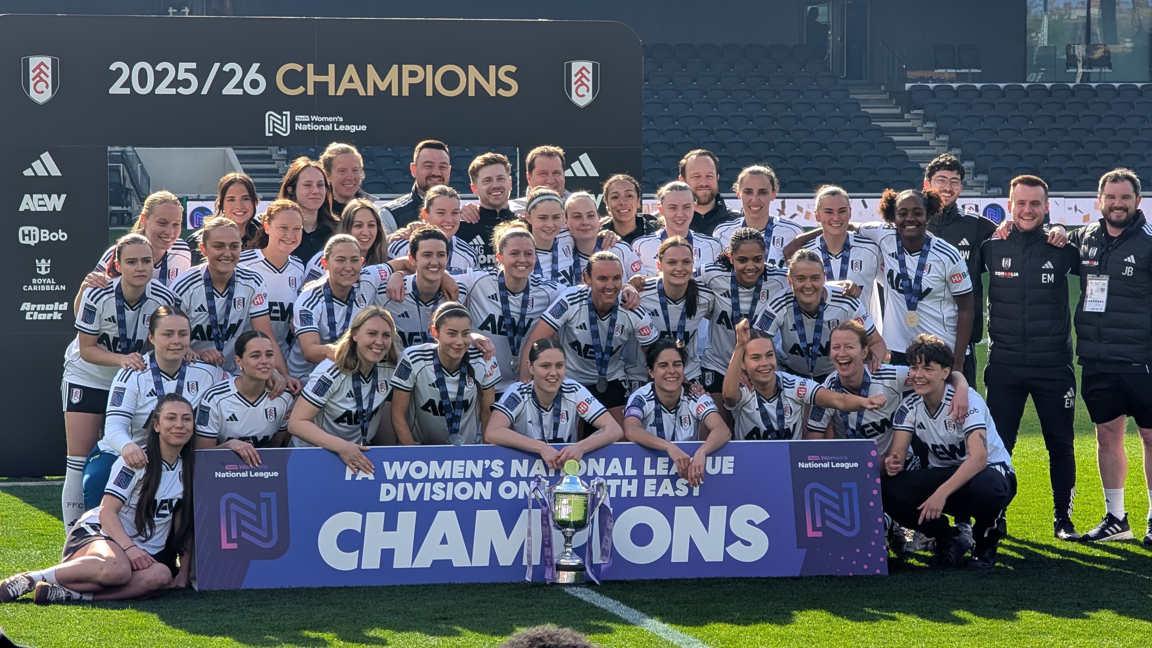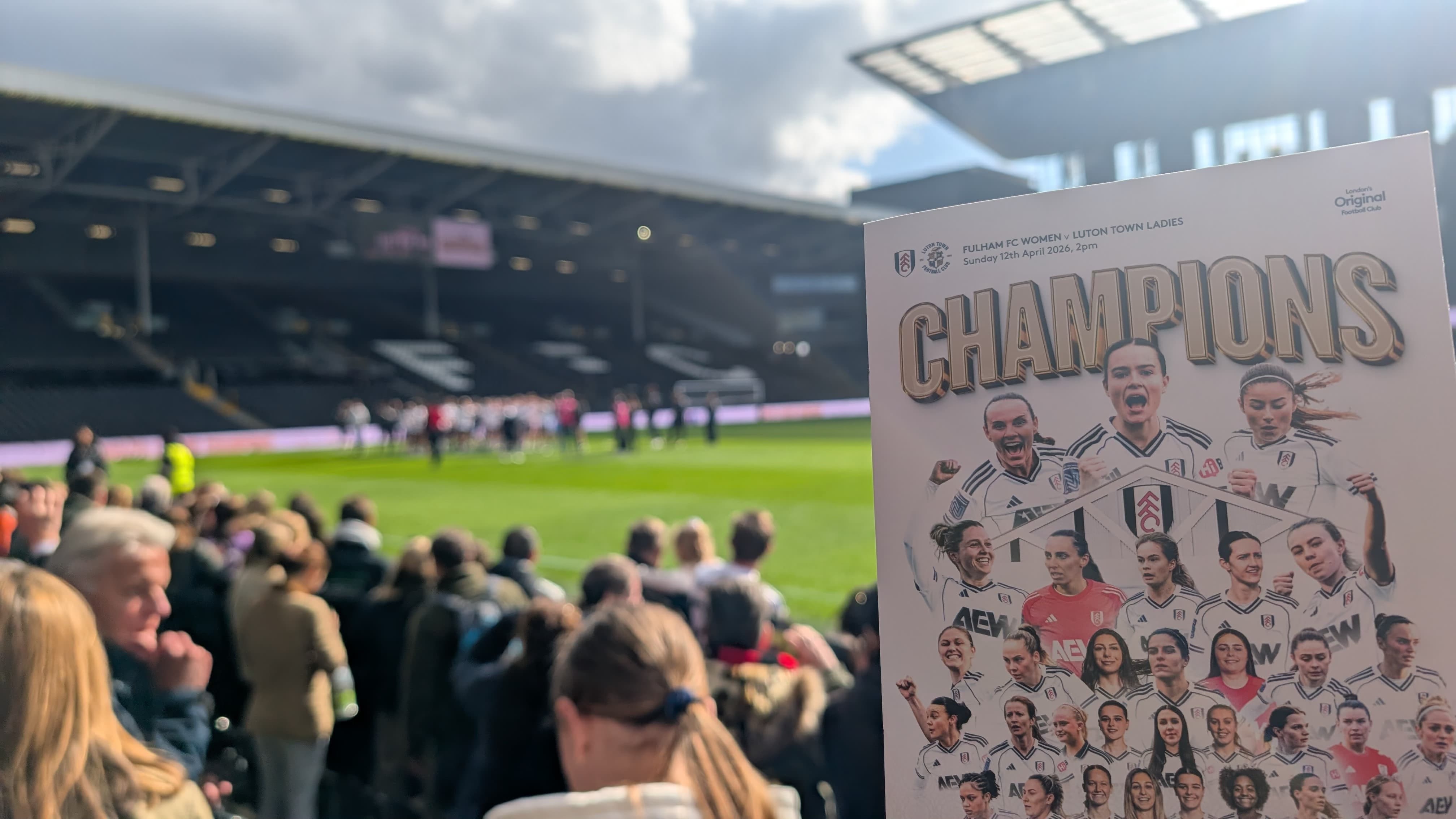 As the final whistle blew to confirm a 3-0 victory. Familiar voice Ivan Berry announced Fulham as league champions and a DJ took over to kick-start the title party. With everyone in position, Meg and Steve were presented with the league trophy, and as the players raised the silverware high the pyrotechnics shot into the air to the sounds of an adoring crowd all taking part in the celebrations.