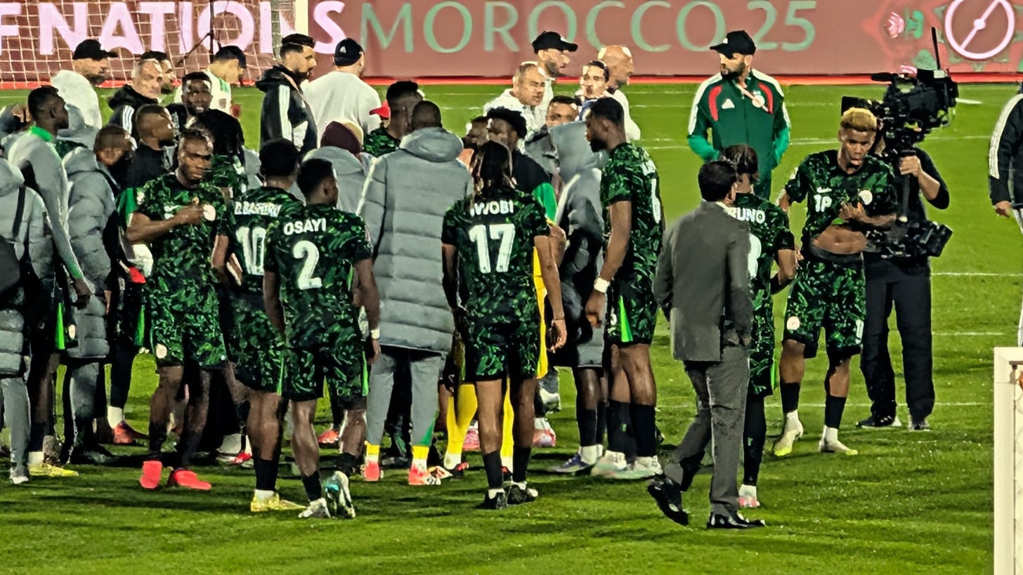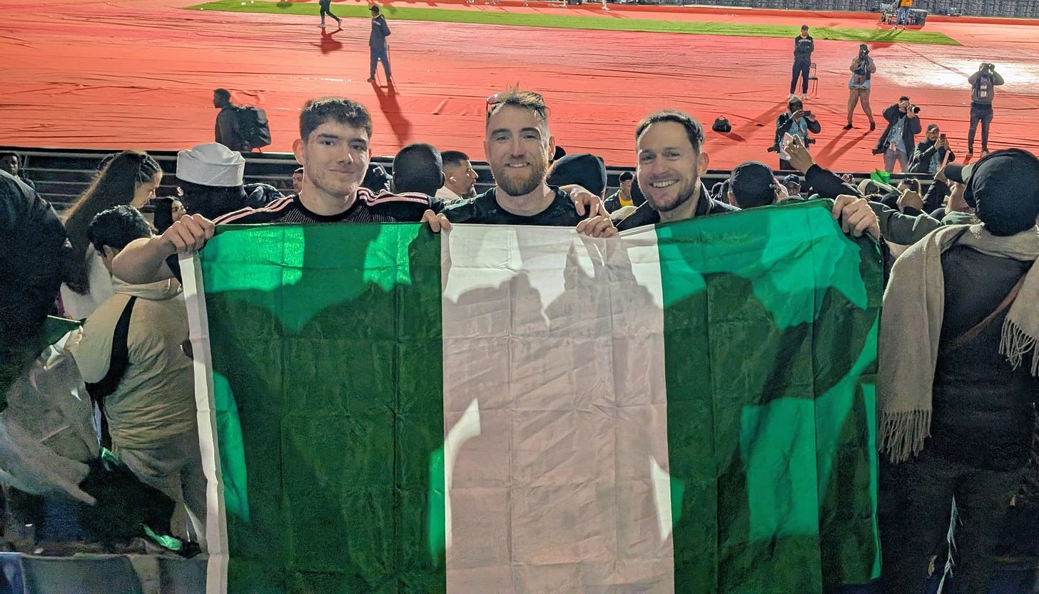 Iwobi and Bassey make the starting line-up, and after more security checks then West Ham away, I make it just in time for kick-off. With a mixed-seater stadium completely dominated by Algerian fans, which makes sense given the extremely close vicinity of the country, I moved myself towards a group of Super Eagles supporters behind the goal. Armed with a lively band and horns, making more noise than the de-facto “home” crowd , it felt just like following Fulham away